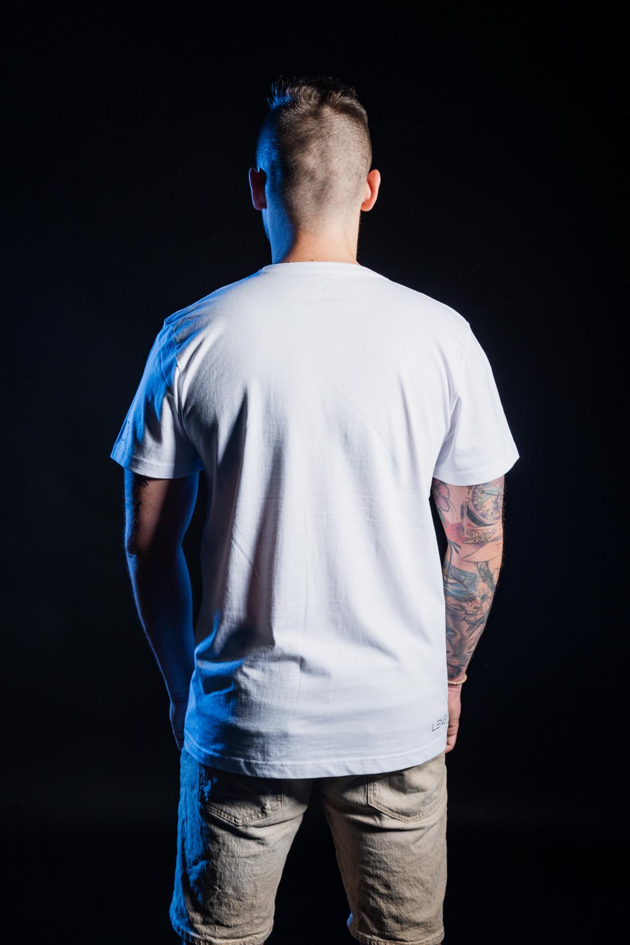 Pánské triko s krátkým rukávem, Barva: Bílá, Materiál: Bio Bavlna, Černé označení na levém rukávu